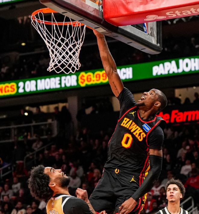 需要注意的是,老鹰队新确立的核心球员杰伦-约翰逊今天只打了5分钟就弄伤了自己的髋部,只能提前退出比赛。库明加一上来就这么爆,难道真要凭借个人能力,一举成为新的鹰王?